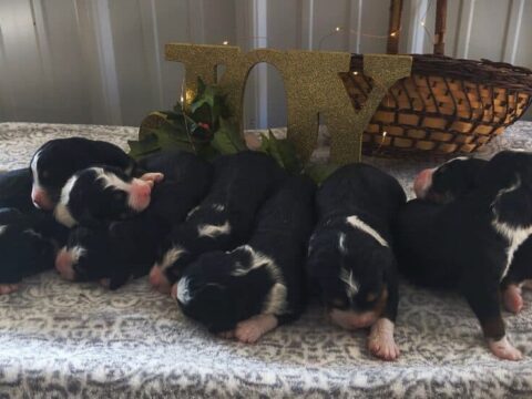 This litter of CKC F1b Bernedoodle puppies were born on Nov 14, 2023, they have all been adopted now. Stay updated here when more are born!